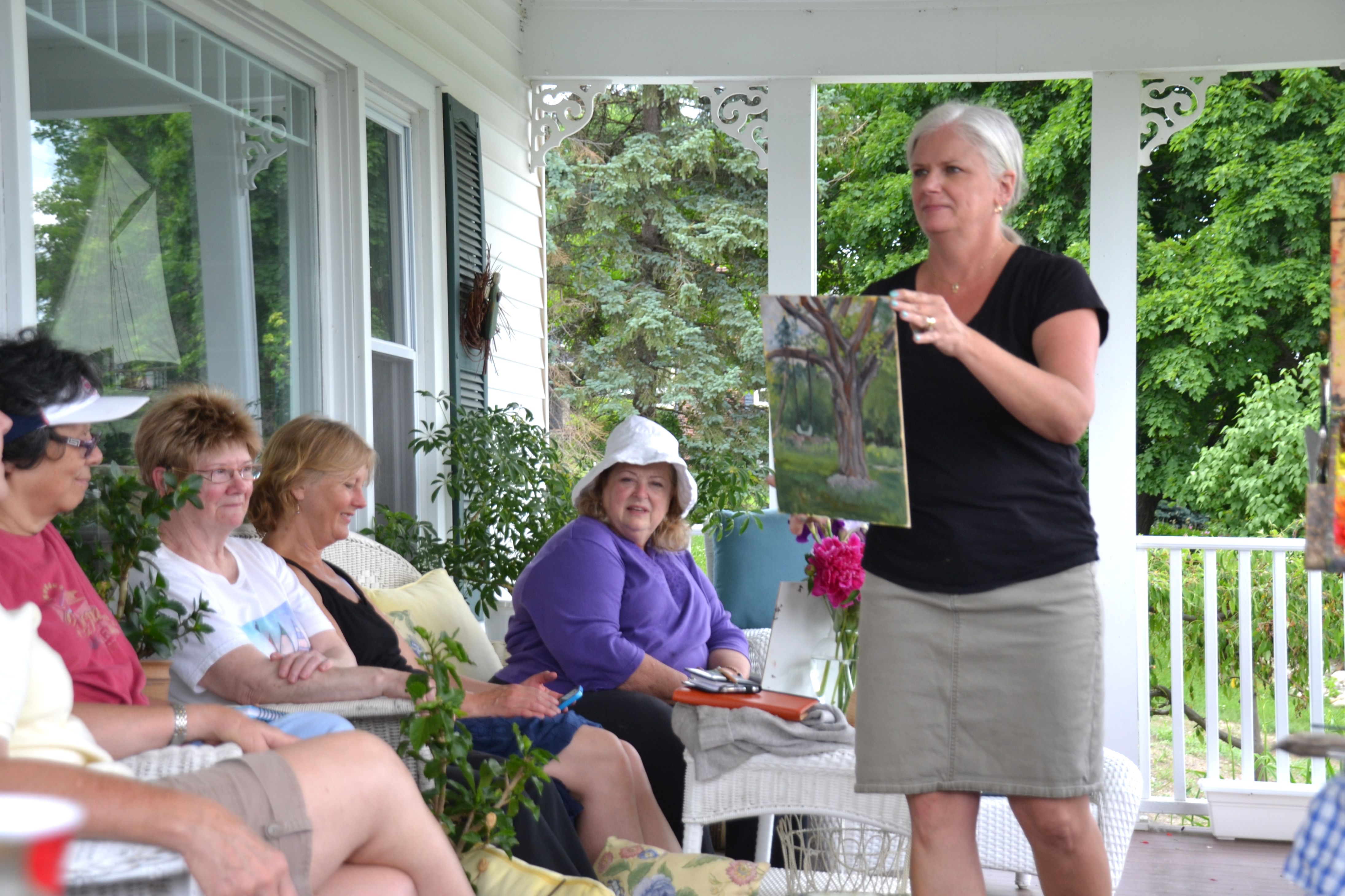 In beginning my personal Blog, I hope to share observations, ideas, inspirations gleaned from my life experiences.  I’ll start with this week’s plein air workshop taught by Lori Putnam here in Canandaigua, NY. Lori is an acclaimed artist with wonderful talent in teaching plein air painting techniques, and she just judged the Finger Lakes Plein Air Competition, the third annual event, in Canandaigua.  Talented artists from all over came here, took their easels and paint brushes out into the fields, parks and Sonnenberg Gardens, Main Street, etc., creating many wonderful works of art. About 18 of us took Lori’s workshop, privileged to have her work with us on the Canandaigua City Pier, a local farm, and at friend Kathy’s home overlooking Canandaigua Lake.  The weather held quite nicely while our painting guests were here, giving them the opportunity to see how beautiful it is here in the Finger Lakes. While my own painting efforts were certainly not masterful, the challenge of learning, trying – no fear allowed – was enlightening.  Hopefully, I’ll remember and put into practice Lori’s advice.  Most of us can benefit from “stepping out of the box” and doing something we may not be able to do perfectly, but that gives us an experience we learn from.  Spending time with other like-minded people, whether they are artists or something else, is also a way we can learn the joys of whatever our heart beats for.